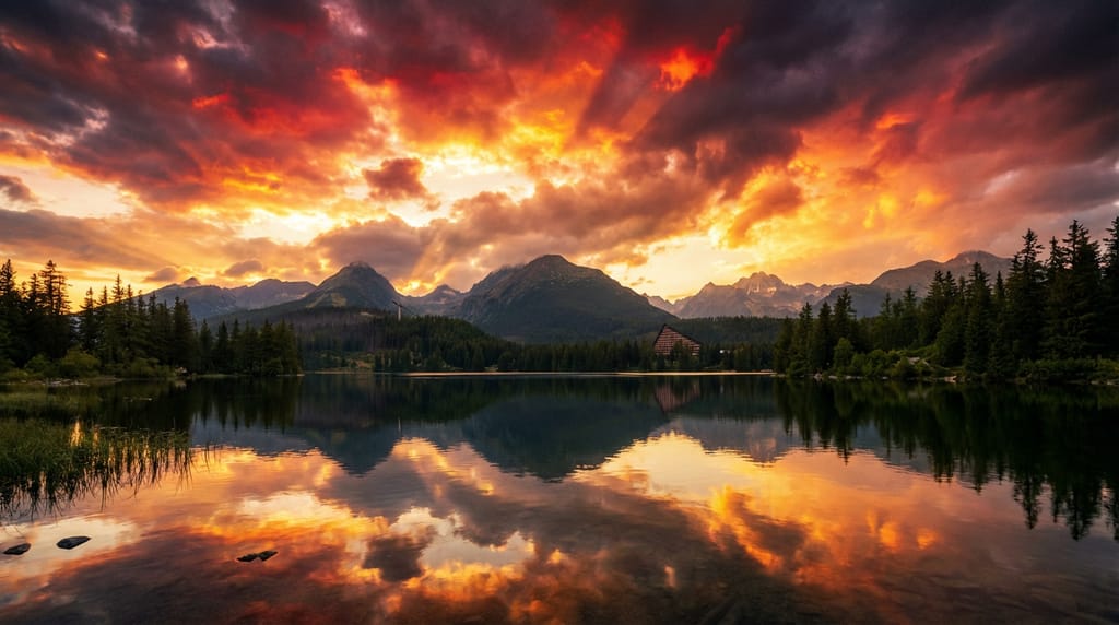 Zachód słońca nad Tatrami, fotorealistyczny, złota godzina, długa ekspozycja, Sony A7R IV